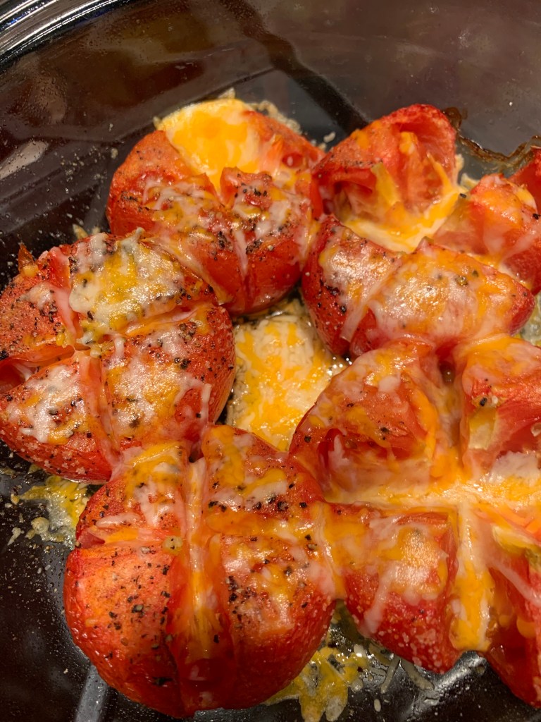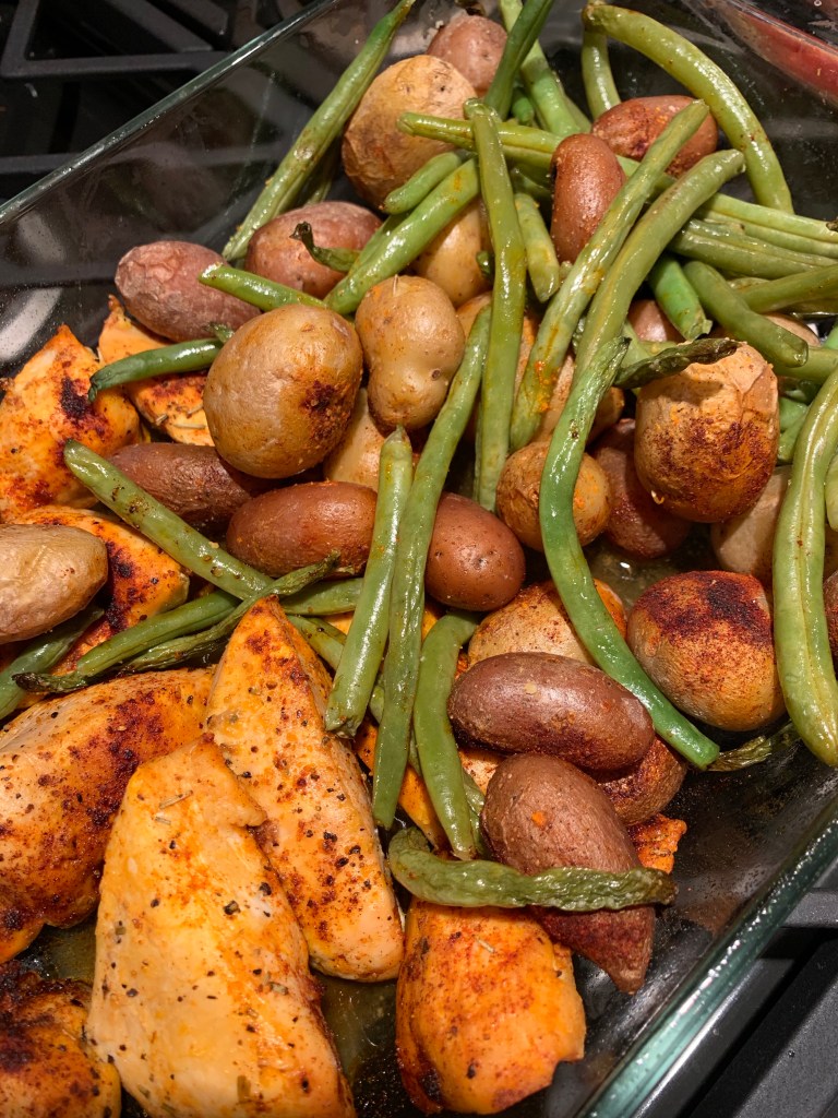 Roasted Chicken with basil, lemon pepper paprika and olive oil… Roasted Tomatoes with olive oil and melted cheese… Roasted new potatoes and green beans… are you seeing a pattern here??? Convection roasting is the most amazing feature a stove has to offer… you can start cooking late in the day.. (I mean really late… like eating at 9:00 pm late)…I am busy working all day..