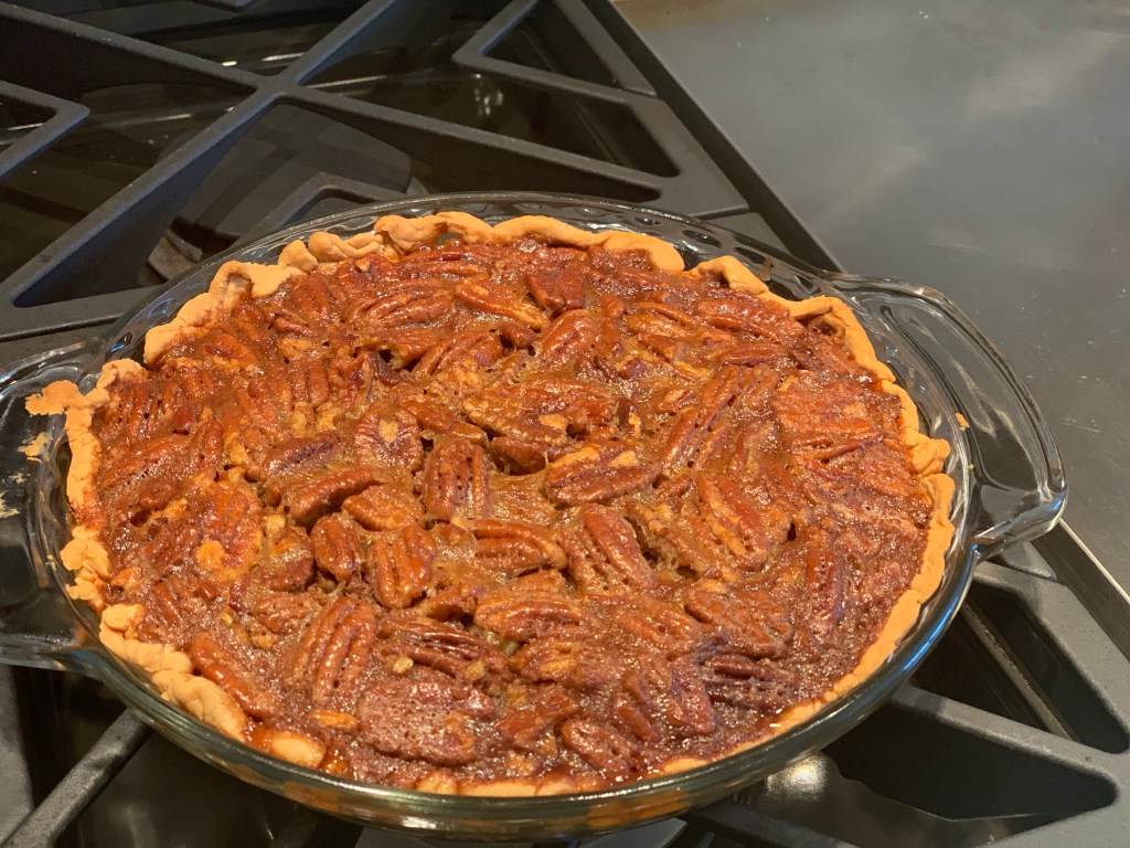Mix corn syrup, eggs sugar, butter and vanilla on low in your mixer. You can also just stir the deliciousness with a spoon. Pour filling into your unbaked pie crust for 60 to 65 minutes, depending on your oven. (Note: if the top starts browning too quickly, cover loosely with aluminum foil) Remove from oven when done and let cool for at least 2 hours.